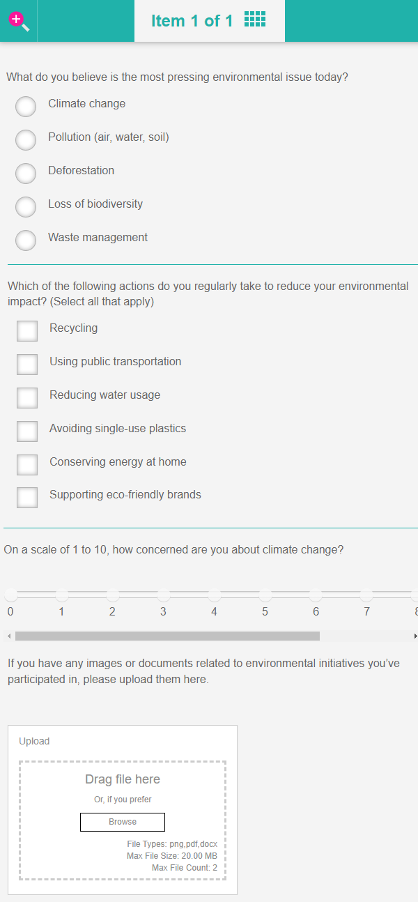 An extended response section provides a specific layout where a single item displays in two parts. The item stimulus is displayed on the first screen and the item on the second screen as displayed below. This feature is particularly useful for items that require extensive information, as it allows content to be displayed on a full page.