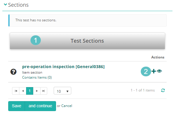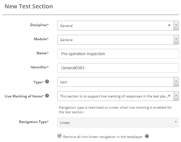 The test section form appears, and from here, follow the same steps as creating a section from the author menu, outlined earlier.