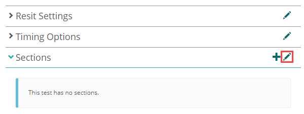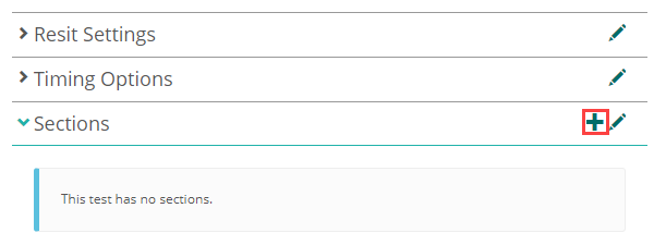 Test sections categorise and organise items within a test. A test can consist of one or more sections.