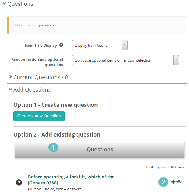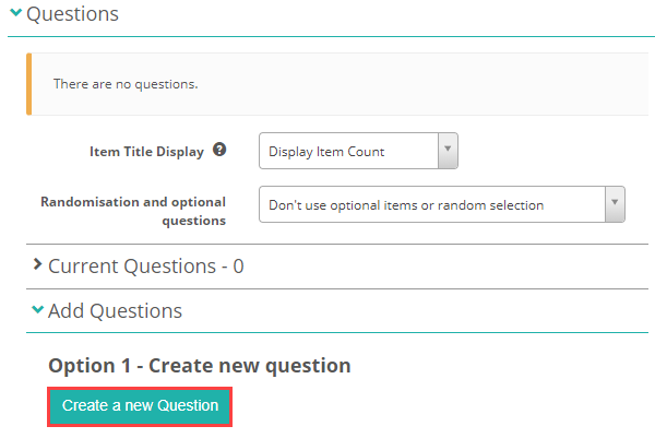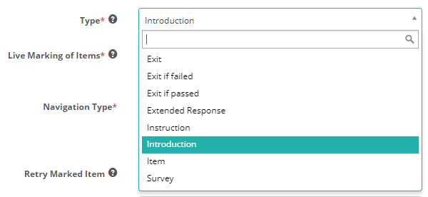 An item section contains the test items. A test can contain more than one item section to allow for item categorisation. There are a wide range of item types available to bring your test to life.
