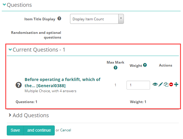 If you have created the test section from the author menu, the next step is to add it to the test.
