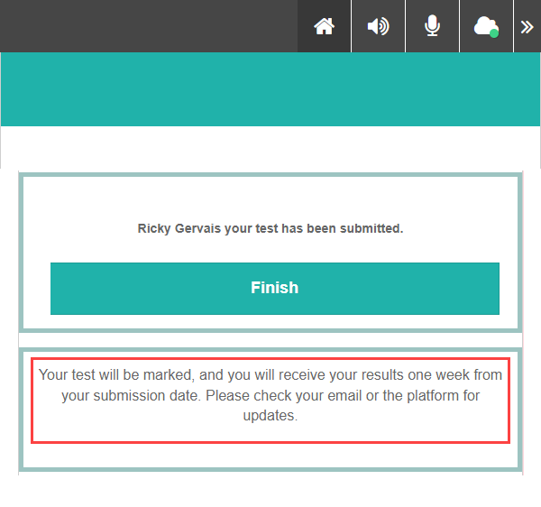 An exit section displays at the end of a test once the test-taker has submitted their answers.