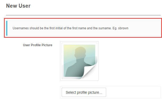 | A | Create Introduction text | This option allows us to add custom text which will be displayed as a snippet to Administrators when they create new Users on the New User screen. ![]() |