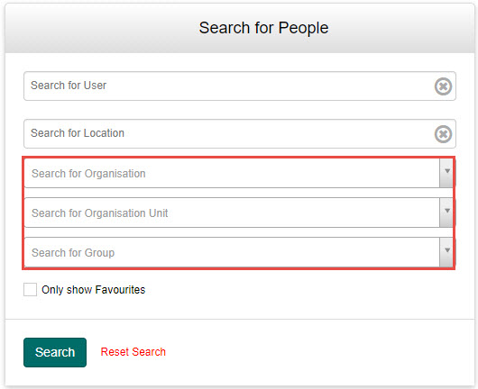 | D | Filter by Org structure | This option enables Users to be filtered by Organisation Structure. If this is disabled, the full Organisation structure is available for searching. ![]() |