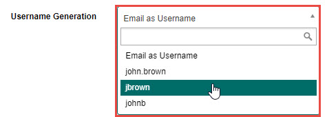 | C | Username Generation | This option allows you to specify the format in which the system will generate usernames, using either the email address or a combination of the User’s first and last name. ![]() |